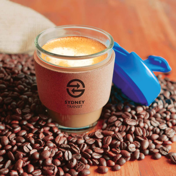 The Pilbara Glass Coffee Cup - 320ml is a reusable coffee cup with heat resistant cork band and secure fitting lid. Made from Borosilicate glass known for its durability and thermal shock resistance. Nominate your choice of lid and flip piece colour. Packed in matt black window box. For logo longevity hand washing is recommended. Material is reusable and sustainable through waste reduction.