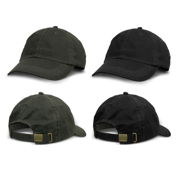 This premium cap is structured with 6 panels and manufactured from 100% cotton fabric, which has been treated with a special wax to make it waterproof and breathable. It has embroidered eyelets , a pre-curved peak, a sweatband and adjustable gunmetal buckle closures which allows this cap to fit most people. Priced here for embroidery up to 10,000 stitches, you can show off your branding and look cool at the same time!