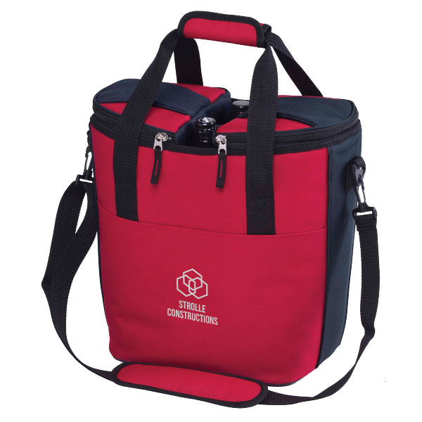 This dual cooler allows you to put cold drinks & salads in one compartment and warm food in the second foil lined compartment! You can also use the second compartment for cold food instead if you wanted, but the option to have a nice warm meal with a cold beer is perfect for autumn picnics & BBQ's! This gorgeous cooler also has a middle compartment with a dual bottle section to keep your wine or champagne upright and easy to get to!