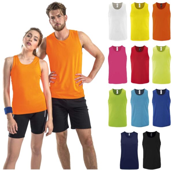 The Rally Men's and Women's Tank Top is made from 100% breathable polyester and is available in a wide range of fashionable colours. They feature binding at collar and armholes, are lightweight and perfect for teams and corporate events.