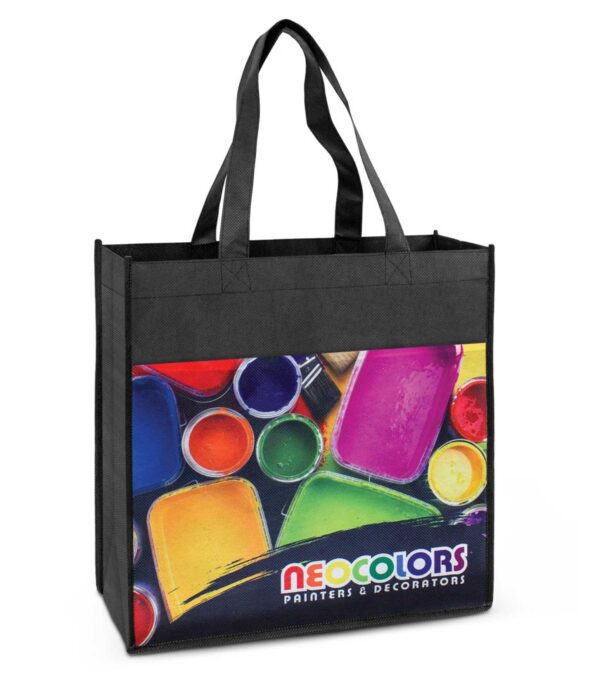 The Salisbury Tote Bag is a large tote bag with a gusset which is manufactured from 80gsm PET. It has a large front slip pocket on the front which can be branded in spot colours or full colour. A production lead time of 20 working days applies to this product by air freight and larger orders can be sea freighted on request to reduce the freight cost.