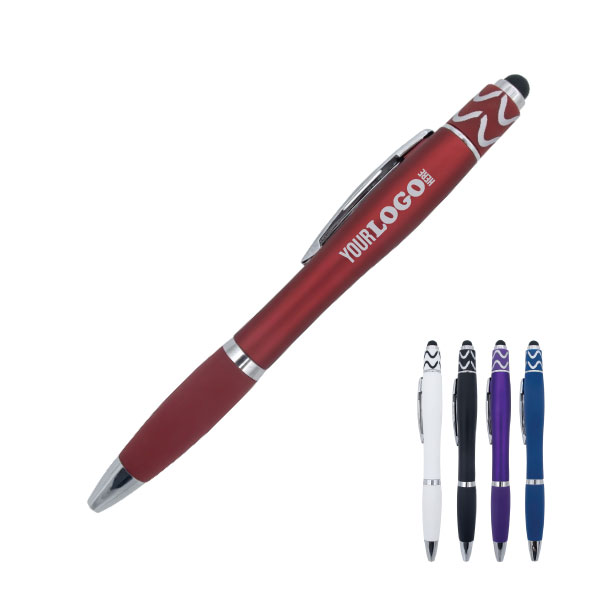 The Sarina is a unique pen perfect for those who want to stay focused and keep your hands busy. The pen has a smooth spinner on the top that actually spins and also a stylus for extra functionality. The pen is a twist pen and a great stress reliever. Full colour print not available for red and blue pens.