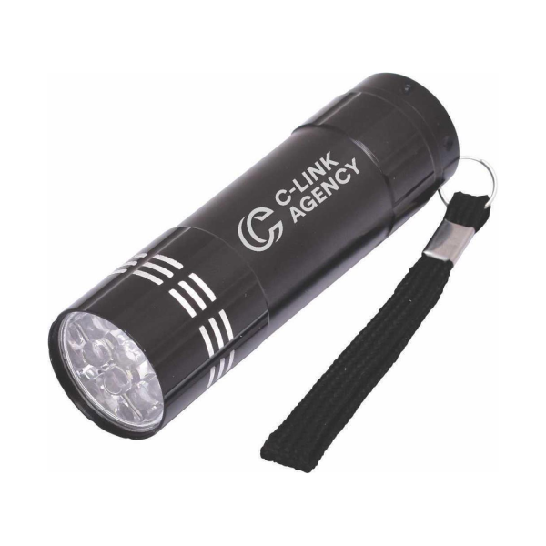 The Shine Mini Torch features lightweight aluminium, so it's small and easy to carry in your bag or briefcase. It has a handy carry strap and 9 ultra-bright LED's. It is available in classic blue, black and gunmetal grey