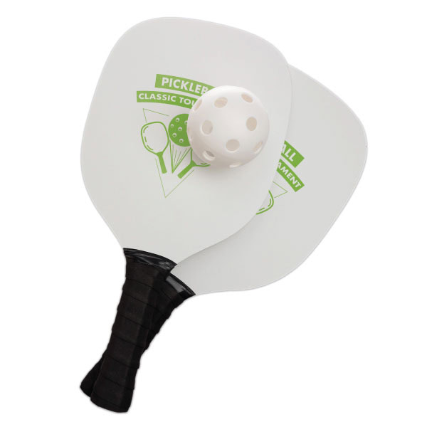 A Pickleball set is a great addition to your outdoor and recreational activities! The set includes two bats made with MDF and black handle, and one ball. Both are packed in a plain drawstring polycotton 280gsm pouch. So have some fun as this is perfect for all ages and skill levels. Enquire if you want the pouch branded.