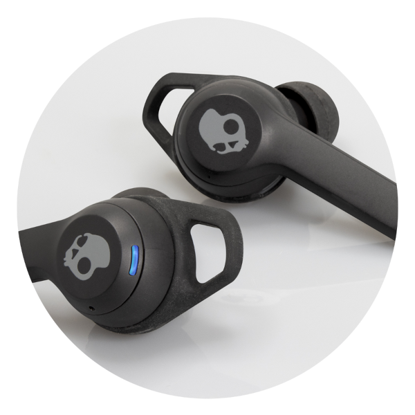 Skullcandy Indy Evo True Wireless Earbuds presented in Skullcandy charging case & packaging