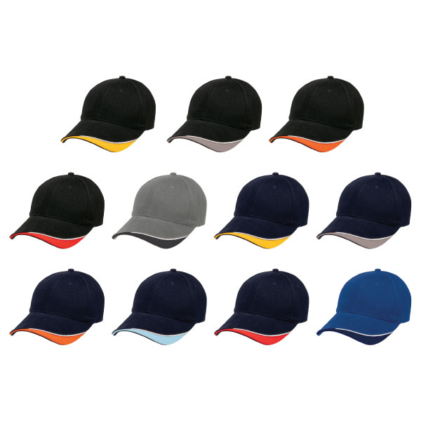 Our Splice Cap is a two-tone rollback sandwich trim designed to highlight small insignia and logos. Ideal for sporting teams and corporate giveaways.