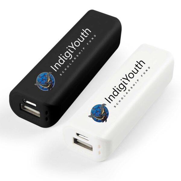 Our Surge Power Bank is a 2200 mAh portable charger for your mobile phone or small device that can recharge from a USB port. Includes USB to Micro USB cable for charging Power Bank. Recharges most devices on the market between 30%-80%. White Power Bank includes White cable, Black Power Bank includes Black cable. Optional box decoration or EVA black zippered pouch available at additional cost. 3 in 1 and USB cable available at additional cost.