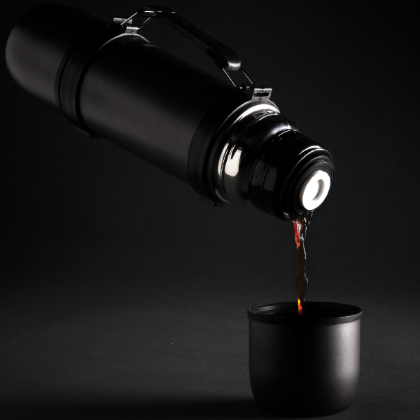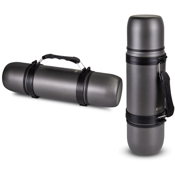 - Stainless steel flask with carrying handle