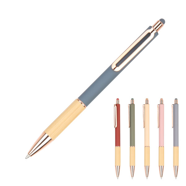 This elegant metal pen has a rubberised colour barrel, bamboo grip and finished with gold plated tip and trims. It's a click action pen and the tip is a slim 1.0mm size with German dokumental black ink.