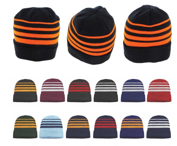 The Team Acrylic Beanie will make a statement with its contrasting multistripes in various colour variations. These 100% knitted acrylic beanies are the perfect choice for team and school events.