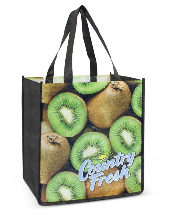 The Telarah Tote Bag has a large gusset which is manufactured from 80gsm PET. It can be branded in spot colours or full colour on both sides at no extra cost. A production lead time of 15 working days applies to this product by air freight and larger orders can be sea freighted on request to reduce the freight cost.