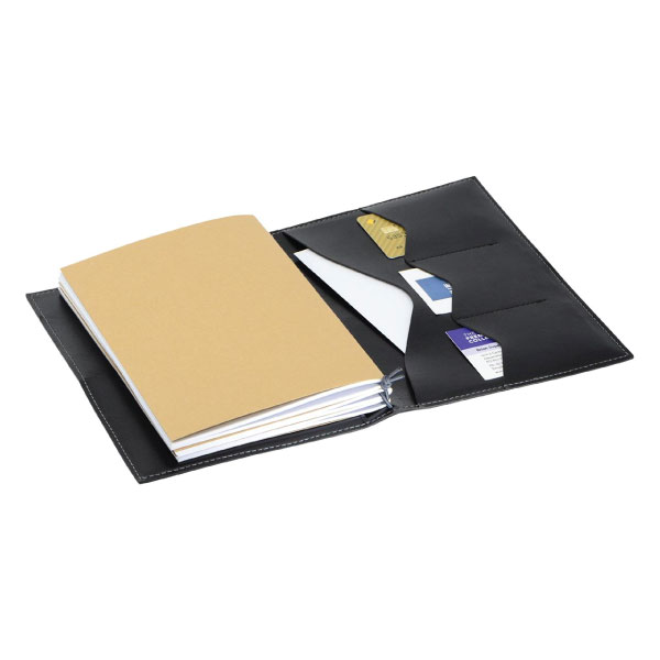 The Tipton A5 Journal is a classic soft leather-feel journal with a elastic closure that sets it apart from the rest. It contains 3 cotton bound notebooks which includes lines, dots and blank paper. It is designed to hold a mobile phone, pen and multiple credit cards. Perfect for companies, schools or any organisation. Foil print and debossing personalisation are all available to create a unique expereince for the user!