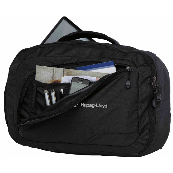This smart brief bag is perfect for your work on-the-go. Made from sturdy 600D polyester, this bag has a fully padded laptop compartment, which is perfect for your 17" device. It has a top zippered drop in padded tricot lined MP3 pocket with rubber headphone exit port for hassle free tunes on the go! It also features a zippered mesh accessory pocket inside the main compartment to keep your valuables safe and also a zippered front compartment with multiple pocket organiser to keep your easy to reach items. This clever bag also has tuck-away adjustable backpack straps, which will turn it from a bag to a backpack quicker than Superman in a phone booth!