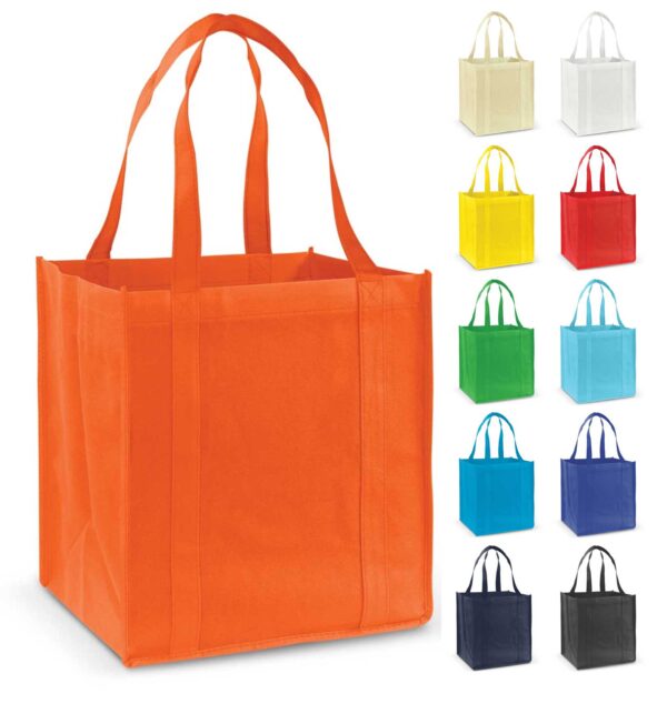 The Venice Shopping Tote is a robust tote bag with a large gusset which is ideal for carrying heavy products like supermarket shopping. It is manufactured from 80gsm non-woven polypropylene material. It has reinforced handles and a reinforced cardboard base for added strength.