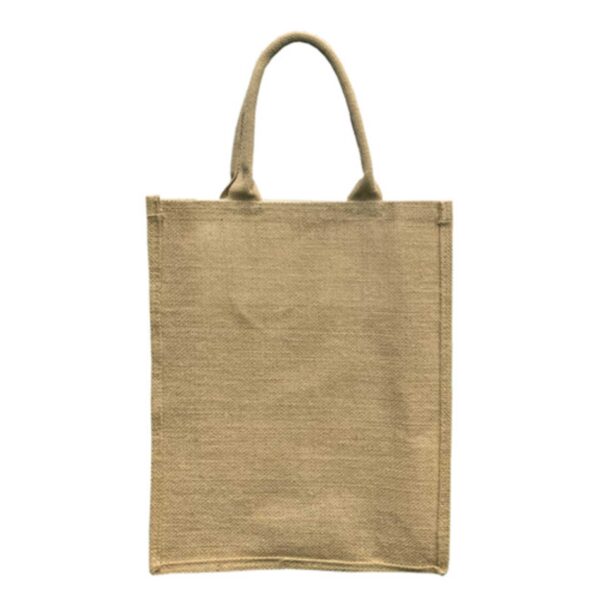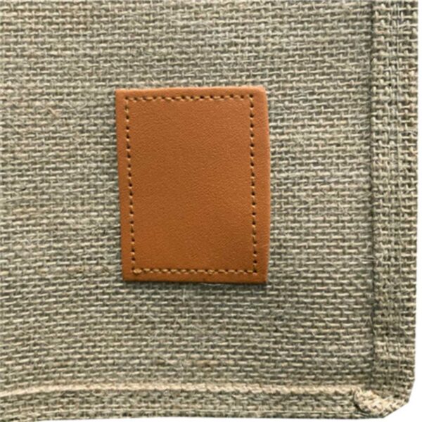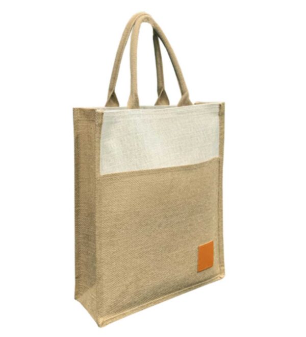 The large Wellington Jute Bag is a high quality, stylish and environmentally friendly laminated jute shopping bag made of 2 natural colours with a large front pouch. It is laminated inside with padded cotton handle and a leather patch stitched on front pouch which can be debossed with your logo. With seamed edges they are very durable and a great promotional bag.
