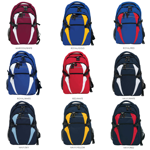 This backpack is perfect for schools, sports teams, hiking & travelling. It comes in a wide range of colours to suit all tastes. It is made from hardwearing 600D polyester, heavy duty zippers & accessories and has rubber feet to protect the bottom of the bag. It has a quick stash zippered front with reflective piping and a handy MP3 pocket in the front compartment with a rubber headphone exit port. It also has dual mesh drink bottle pockets to pop in your favourite drink bottles. The bag is finished off with mesh backed shoulder straps and contoured padded mesh back panels for comfort.